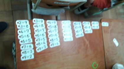 足し算(2)のカードを使って,答えが同じ数になるようにカードを並べます。