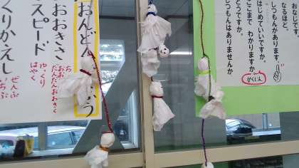 運動会のお天気を心配する子ども達が,てるてる坊主を作ってくれました。とってもかわいいてるてる坊主です。