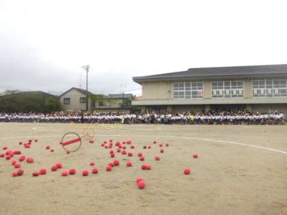 かわいいダンスの後,玉入れで競います。