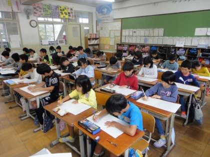しーんとした中,集中して視写に取り組みました。