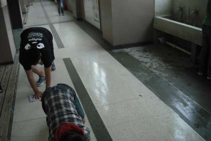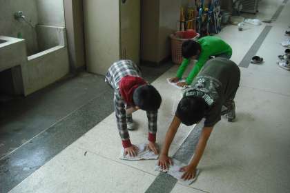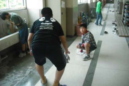 給食を運んでいるときに,汁物のおかずがこぼれるときがあります。そんなときは,5・6年生が雑巾を持って拭きに行ってくれます。他学年の廊下も拭いてくれるのですごく助かります。そんなときの,子どもたちは,とても輝いています。