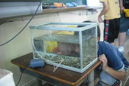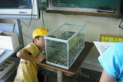 理科の学習で,メダカの観察をします。そのメダカが教室にやってきました。生き物の不思議と命の大切さを感じてほしいと思います。大切に育てましょう!!
