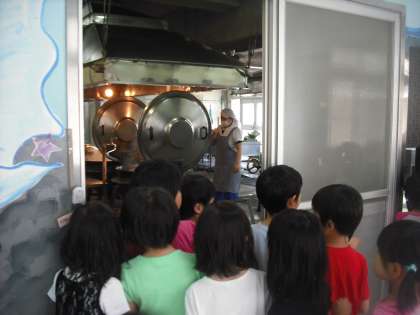 調理員さんが一生懸命作っているところを見学し,苦手なものもがんばって食べていました。