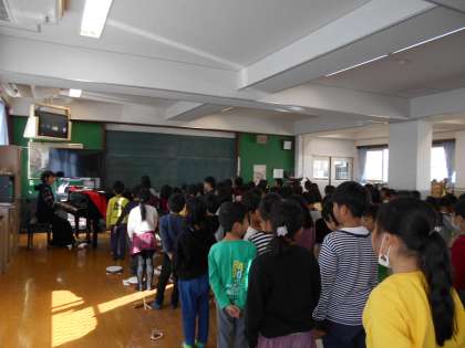 今日は,楽器ごとに分かれて練習した後,音楽ホールに集まって合奏と歌を歌いました。
