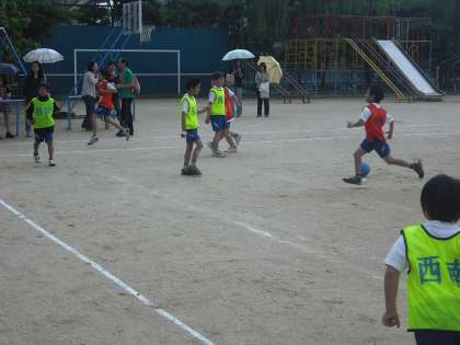 日曜日はキックベース大会でした。雨で途中で中止になってしまったけど、雨の中頑張りました。