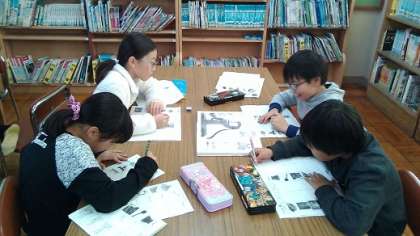今日は図書室で百科事典を使って調べました。