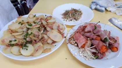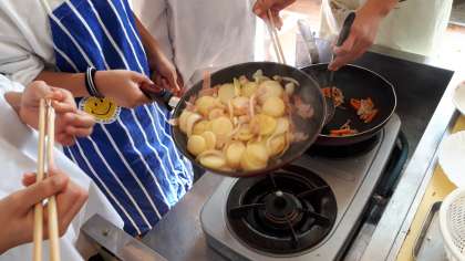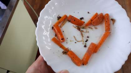 ジャーマンポテトも続々と出来上がり,家庭科室は食欲そそられる香りでいっぱいでした。余ったにんじんで愛情とスパイスいっぱいのおすそ分けをくれたグループがありました。他のグループも「はい,これ先生の分ね。」と。おなかと幸せがいっぱいになりました。みんなありがとう!