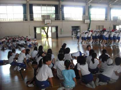 今日は岬の家に行った時に踊るダンスの練習をしました。4年生の各クラスが集まり,みんな楽しく,上手に踊っていました。岬の家が楽しみですね☆