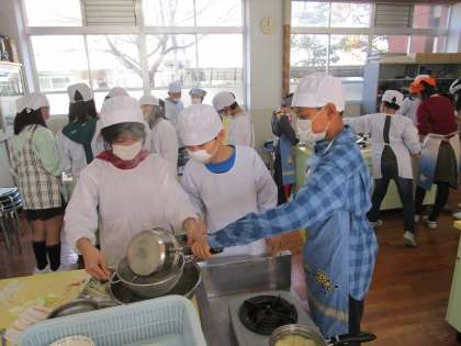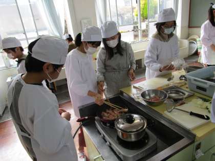 6年生では,先週と今週に分かれて,各クラスで調理実習を行っています。