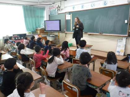 今日は,初めてALTの先生が来てくれました。自己紹介ではたくさんの質問が出て,中には英語で質問をしている子もいました。子どもたちはALTの先生の発音をよく聞きながら楽しく色の名前を勉強しました。今後も楽しく英語の学習をしていきたいです。