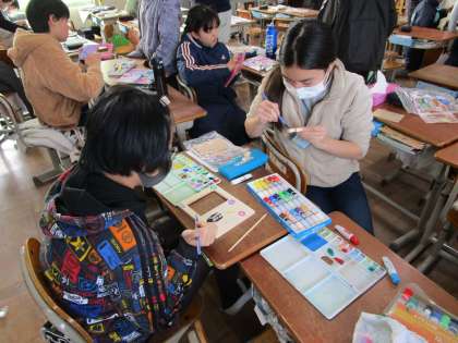 卒業制作として,「写真立て」を作っています。彫刻刀で彫ったり,色付けし,ニスを塗ったりしています。