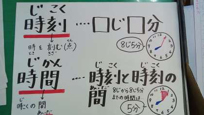じこくとじかんの違いをしっかりとわかっておくことが,とっても大事です。