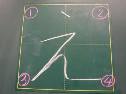 ひらがなは,しゃしんのように4つのおへやをいしきすると,じょうずにかけます。
