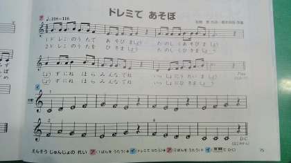 もう一つの曲は教科書の後ろの方にのっている「ドレミであそぼ」という曲です。