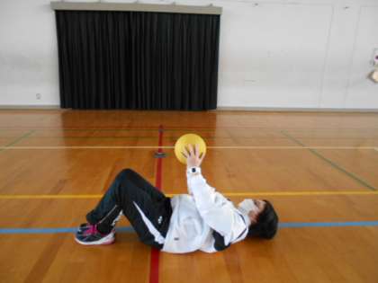 お家でできる人はやってみましょう。ボールを真上に向かって投げ,落とさないように受けます。お家でする場合は,丸めたタオルなどでもできます。挑戦してみてください。