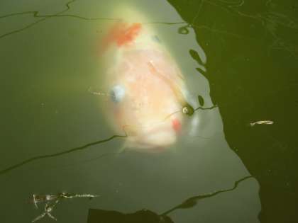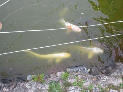 ばしゃばしゃと音を立てて足元の近くを泳ぎます。