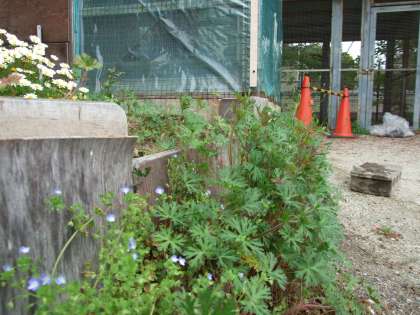 インコのピーちゃんとウサギのくろまろがいる飼育小屋のそばです。