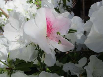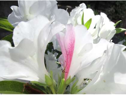 真っ白の花が多く咲く中で,半分だけピンクの色が入った花があります。