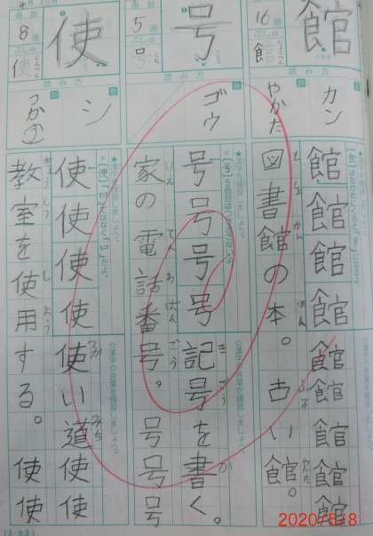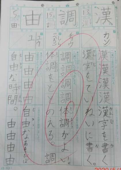 漢字のドリルノートを点検しました。