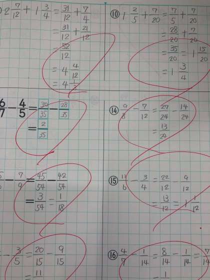 小数の計算は「小数点の移動」に,分数の計算は「約分」に注意しましょう。