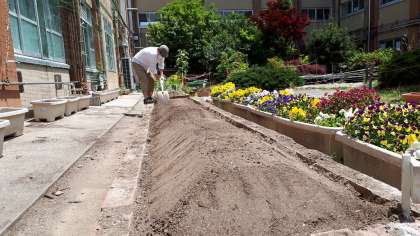 中庭の3年生の花だんに,いろんなたねをまきました。