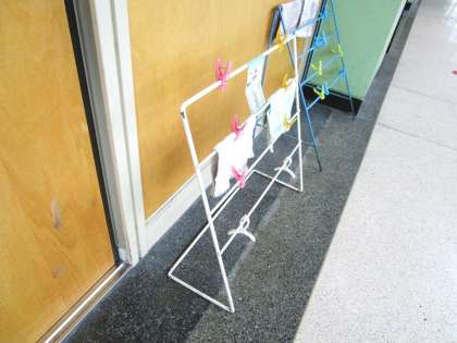 シリーズ第3問は,教室前のろうかにある「ぞうきんかけ」の曲がったところです。