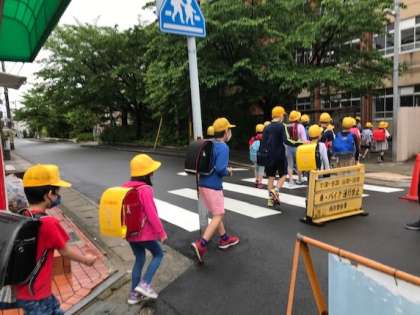 今日は,初めての「学習相談や面談ができる登校日」でした。朝から,町別の班で上手に並んで,元気に登校していました。