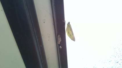 お昼前には,手洗い場の窓のところにモンシロチョウがいたので