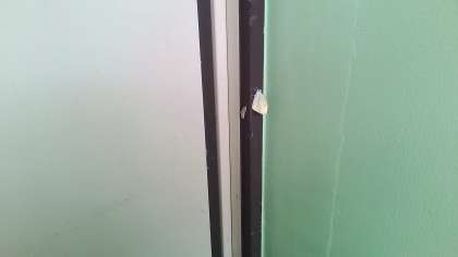 下 ろう下でさなぎになっていました。