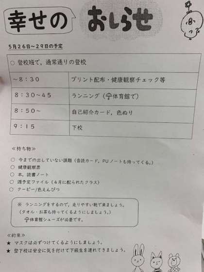 また,おしらせを見て準備しておくようにしましょう。