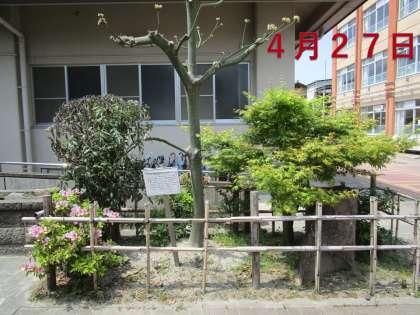 さて,今日の写真はホームページで4月23日と27日にしょうかいした「ピロティのそばにある植え込みの様子」です。