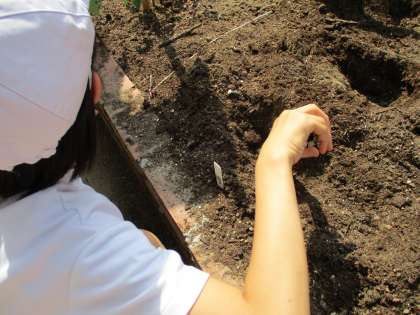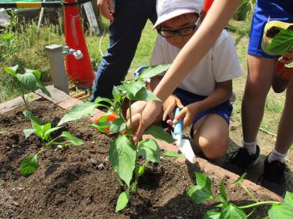 本日Bグループの児童たちが畑に野菜の苗を植えました。