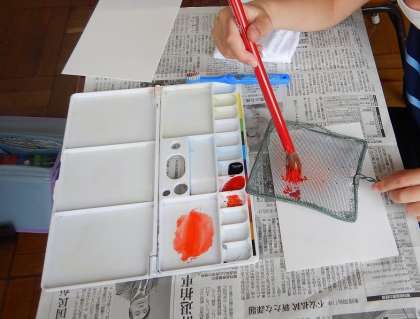 4年生交流学習で,絵の具を使った作品作りをしました。