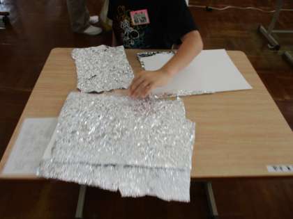 アルミホイルを一度丸め,それをゆっくり開くのですが,これが意外と難しい。