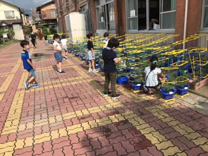 先週,近畿地方も梅雨入りしました。せっかく全員が登校できるようになったのに,あまり外で活動できないかもしれないなあと心配しましたが,今日は晴れ間も見られました。早速子ども達は,育てている植物に水をやったり,運動場で元気に遊んだりして,梅雨の晴れ間を存分に楽しんでいます。