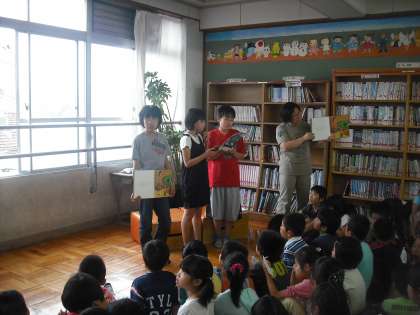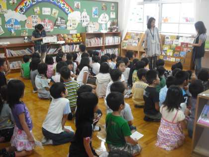 先週から休み時間に図書室のほうで読み聞かせが始まっています☆雨の日も,晴れの日も多くの児童が図書室に来ています。すごく人気ですね。