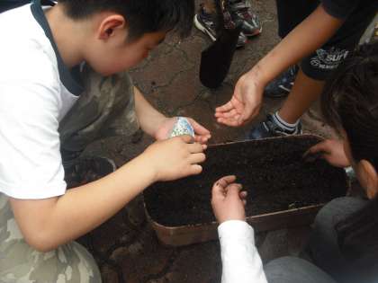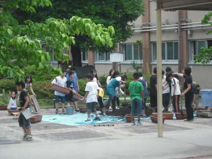 昨日,栽培委員会はみんなでヒマワリを植えました。プランターに土を入れ,種を植えたりしました!ナメクジがたくさんでたり,なんかの幼虫もたくさんいました。みんな一生懸命やっていてすごくキラキラしていました☆その後,みんなで掃除をしたり草抜きのボランティアもしてくれていました☆