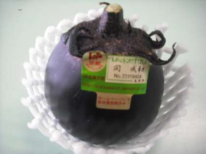 朝,給食室に届いた賀茂なすは1つ1つ白いお洋服を着て箱に入っていました。調理員さんはみんなが食べれるように小さいながらも存在感があるように切ってくれました。