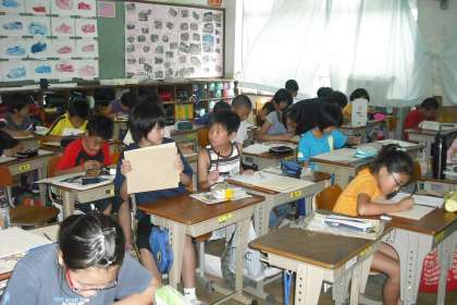 図画工作科の授業で,板を切り抜いてパズルを作ります。自分たちの好きなイメージを板に描き,糸のこぎりで切り抜きます。まずは下書きをしました。