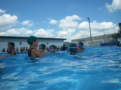 1年生の体育でのプール学習は今日が最後です。