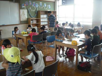 今日からサマースタディーが始まりました。1年生から6年生まで順番にミーティングルームと図書室に別れて勉強していました。仲良の良い友達と一緒の席に座っていても静かに勉強していました☆あっという間に時間がすぎました♪