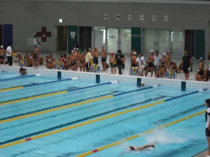 本日は京都市小学生水泳記録会がアクアリーナで開かれ、樫原小学校からは8人が出場しました。この記録会に向けて3日間練習して挑み、今日はその力が出せていたと思います。子どもたちにとって大きな会場で、たくさんの観客に見守られながら自身のタイムを計ることは、とても貴重な経験になったと思います。