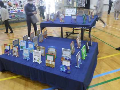 今週は体育館で図工展を行っています。毎年,見てきた図工展。過去の自分も思い出しながら見ていたのでしょうか。なかよしペアの子の作品や他の学年の作品をじっくりと見入っていました。それぞれの個性があふれた作品ばかりですね。
