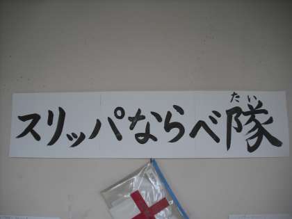 スリッパを並べた人が自分の名前を張り紙に書いてもらっています!たくさんの人がスリッパを並べているようです。次に使う人が困らずに気持ちよくスリッパを履けるようになってきました☆ずっとスリッパがキレイに並べられていたら,ものすごく気持ちがいいですね♪
