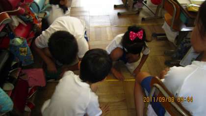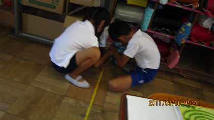 すみの方まできっちり測っています。グループの協力もばっちりです。