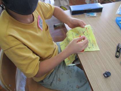 かしのみの5年生児童たちは,家庭科で裁縫に挑戦しています。