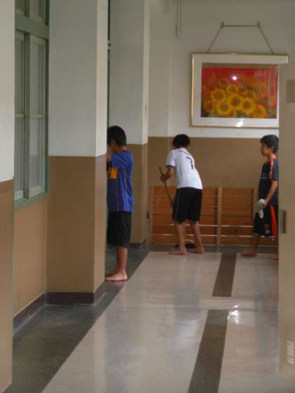 そうじ時間@音楽ホール横の廊下