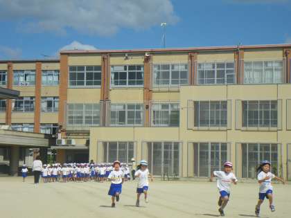 秋晴れの空の下,1年生も運動会に向けての練習を始めました。