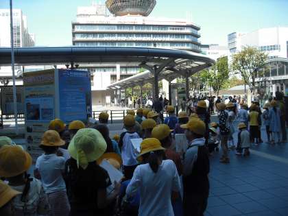 次は,京都駅に行き,京都タワーを見ているようすです☆