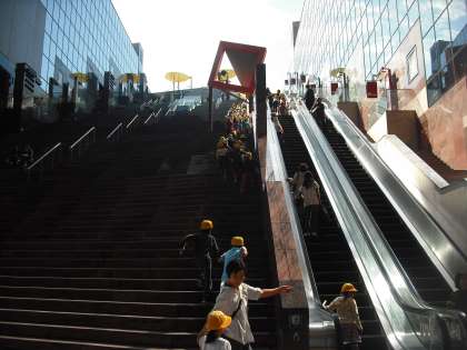 次に京都駅の名物,「大階段」です。この大階段では,ミニコンサートや階段掛上り大会などしています☆子ども達は,階段を見て一気に駆け上がろうとしたのですが・・・まだ体力が足りなくてエスカレーターに乗り換えたりしていました♪でもよく頑張って登ったね☆